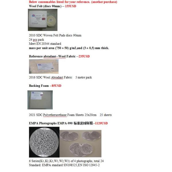 BS 3424/5690,IWTO 40-88,BS EN 388/530,IWSTM 112/196,ASTM 4966/4970 IS 12673, JIS L1096, SFS 4328, PR EN ISO 12947-1, PR EN ISO 12945-2, SATRA TM31